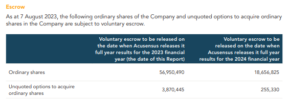 One thing to keep a close eye on is the shares in escrow. A large portion of these were released upon the full year result announcement last week with a further portion in 12 months time.