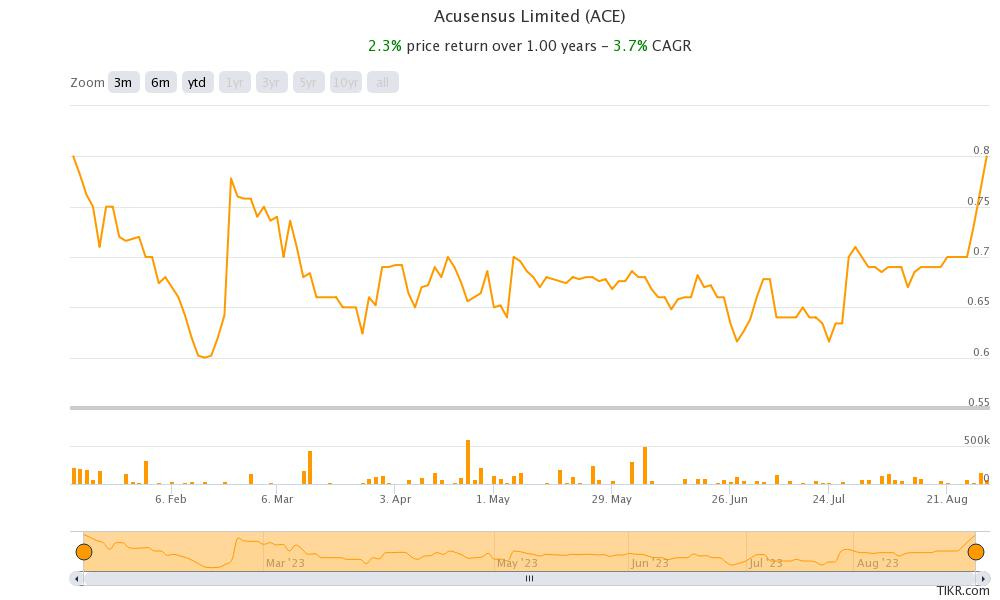 Despite the decline Acusensus is still profitable although just. It is currently trading at a price to sales ratio of almost 2.5. If revenues can continue to grow at this rate and costs are controlled we could see some impressive scale.